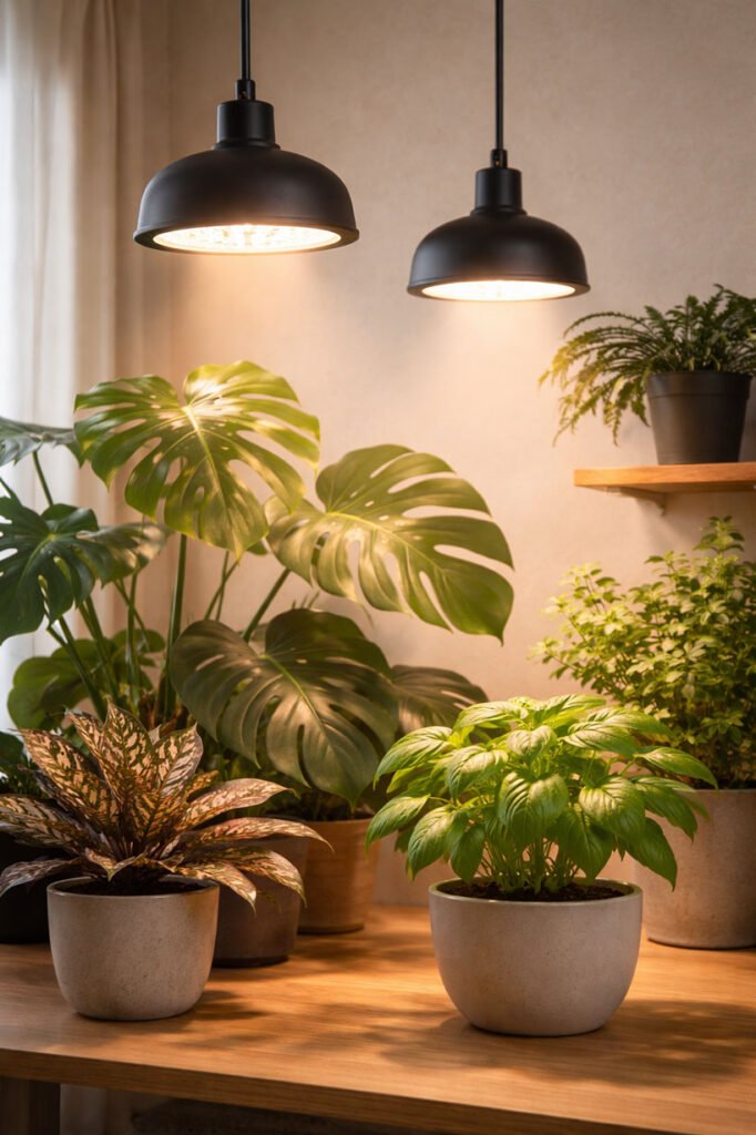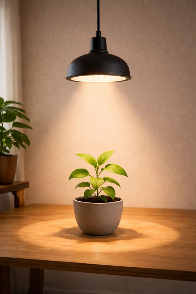 Lampes 20–40W, parfaites pour quelques plantes.